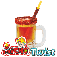 Despues sumerge la boca del vaso cubierto de pulpa MICHO TWIST en el MICHO POLVO a tu gusto. Vierte tu bebida favorita … y disfruta con ¡MICHO TWIST!