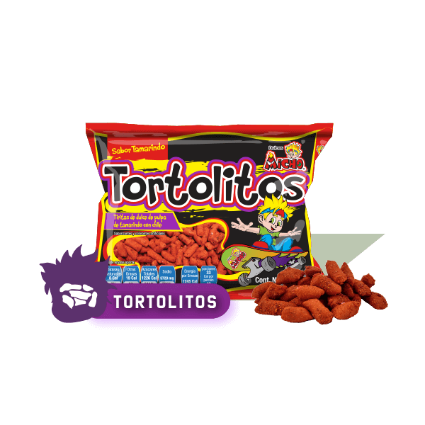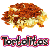 Pica la fruta de tu elección en cuadros pequeños, viértelas en un tazón, agrega frituras de maíz, agrega el ingrediente principal; TORTOLITOS ENCHILADOS la cantidad necesaria, báñalos con salsa Chamoy con unas gotas de limón. Y disfruta viendo una buena película o comparte con tus amigos.