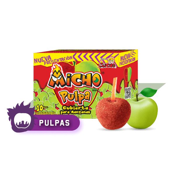 ¡DISFRUTA TU MANZANA CUBIERTA CON MICHO PULPA Y MICHO POLVO!